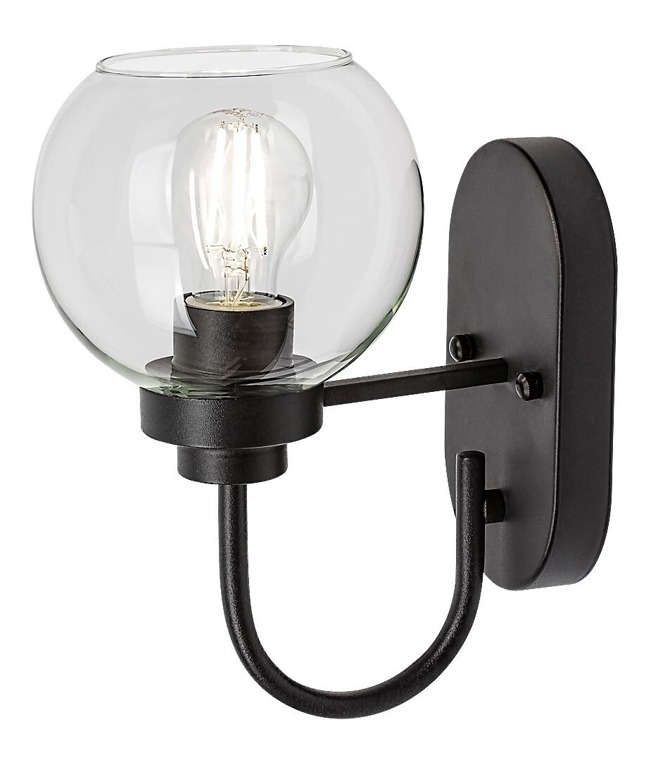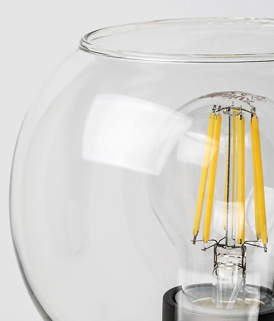 Цвят::изработен от черен цвят метална основа и сферична форма прозрачна стъклена чашка