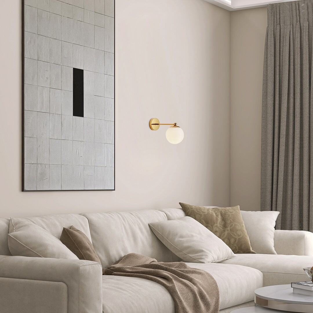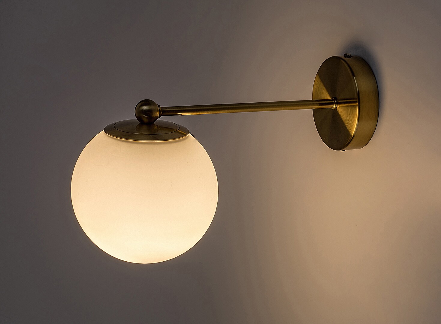 Цвят: изработен от основа метал в златен цвят и тяло от матирано бяло стъкло