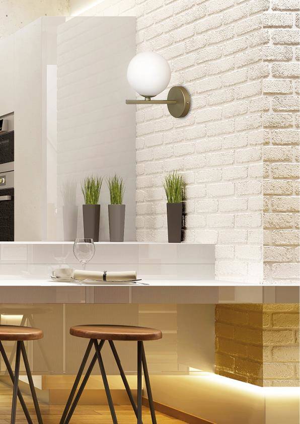 Цвят : матиран месинг/злато , сфери от стъкло в бяло