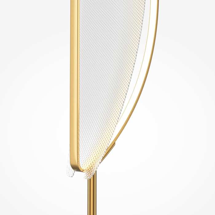 Оригинална LED подова лампа от серията Breeze, изработена от мраморна основа с метално рамо и тяло в месингов цвят, с уникален декоративен разсейвател от прозрачен текстуриран акрил и вграден 33W 3000K LED. Атрактивна лампа с вграден димер, която ще изпълни с модерна атмосфера и ще стилизира вашия хол, трапезария, спалня.