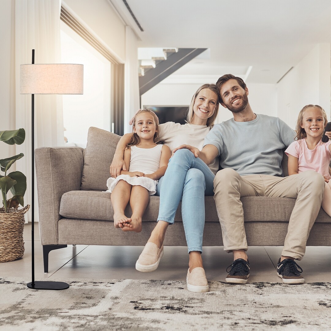 Цвят: основата е изработена от метал в черен мат, абажурът е от бежов текстил