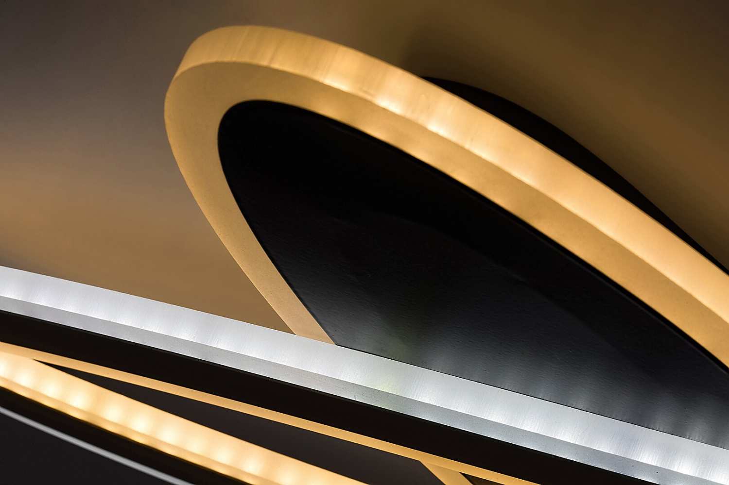 Rábalux Taneli 2 таванно осветление е модел, създаден от Rábalux. Това е идеалният избор за тези, които търсят умно осветление с висока интензивност за по-големи стаи в дома си. Голямата лампа се състои от два взаимно перпендикулярни, издължени елипсовидни елемента, изработени от метал в черно-златист цвят, с бял акрилен абажур. Огледалният ефект на лампата допълнително усилва елегантния й вид и придава на пространството уникална светлинна игра. Лампата е с вграден LED източник на светлина, чиято цветова температура може да бъде регулирана в три различни варианта. Лампата включва дистанционно управление, с което могат да се настройват не само цветната температура, но и яркостта, паметта, таймерът и нощната функция. Това многофункционално умно таванно осветление е най-подходящо за дневната или спалнята. Благодарение на LED технологията, моделът е енергоефективен и има дълъг експлоатационен живот.