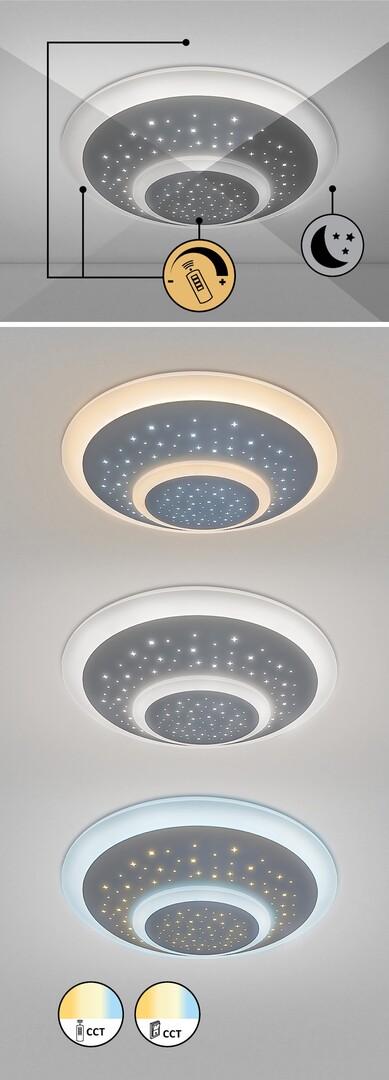Особености: IP 20, с дистанционното можете да избирате режим на светена, цветна температура, сила на светлината