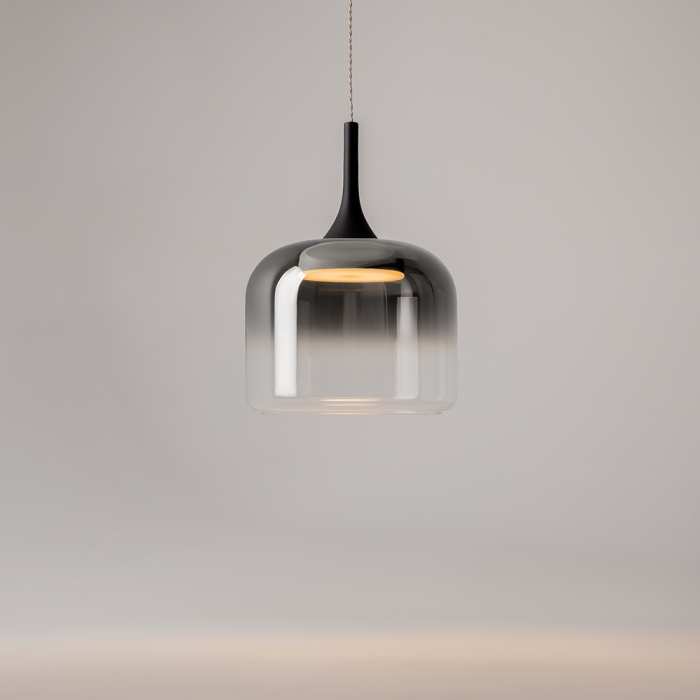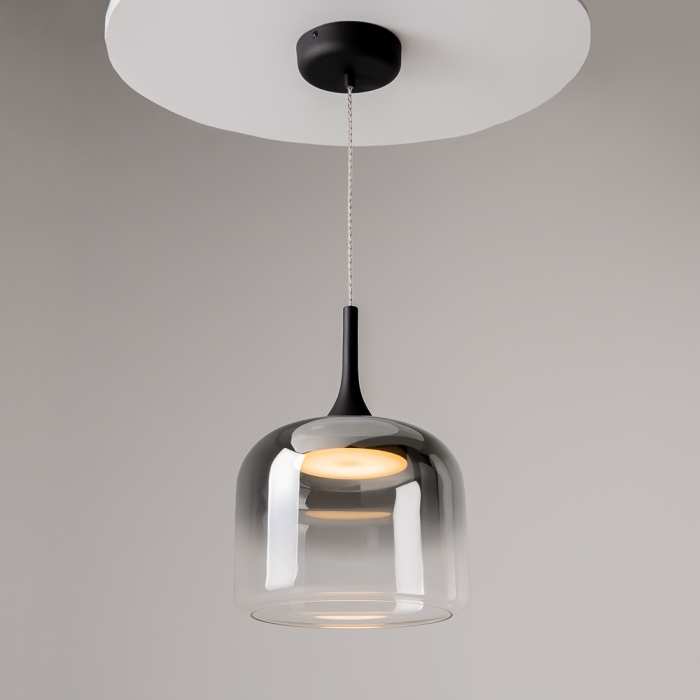 Оригинален светодиоден полилей от серията Spirito, изработен от черен цвят метална основа с чашка от градиентно лято стъкло в черен нюанс и вграден 12W LED, 3000K. Стилно предложение за осветлението на вашия модерен хол, трапезария, спалня или коридор.Индивидуалните висящи лампи придават на стаята ви омайваща илюзия за безтегловност и елегантност. Независимо дали са впечатляващ единичен акцент или в артистични композиции от множество лампи на различна височина, те поставят стилни акценти и създават несравнима атмосфера, изпълнена с изтънченост и лекота.
