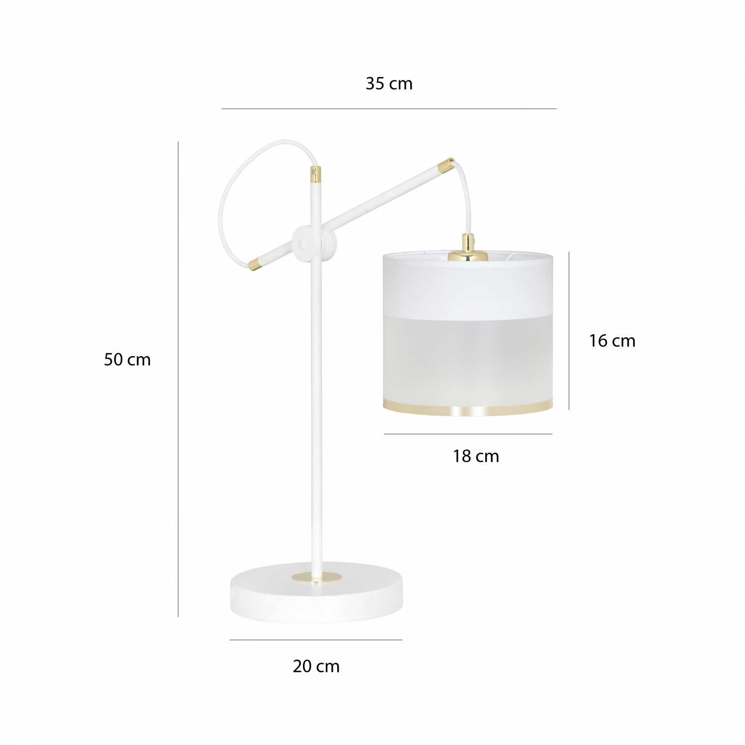 Цвят: основа от метал в бяло,абажур от текстил-бяло със златисто