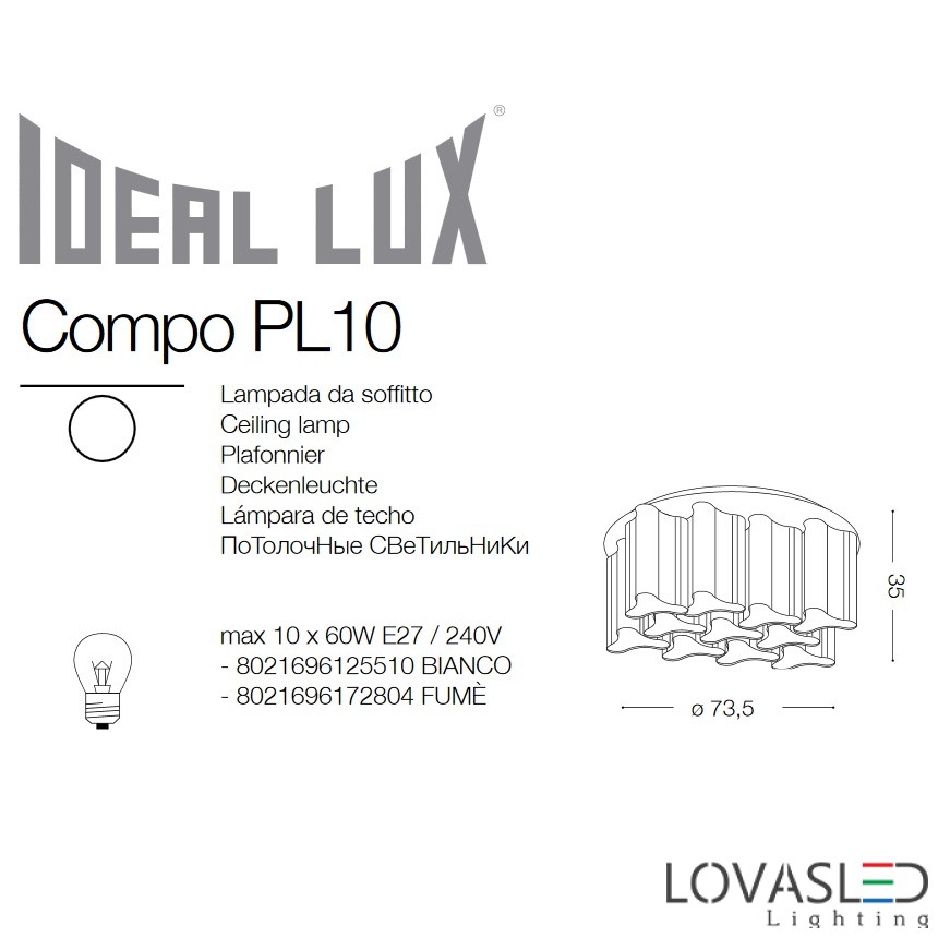 плафониера опушено стъкло Compo PL10 (172804) | Плафониери | Oсветителни тела и осветление - Магазини за осветление Метеор Пловдив. Осветителни тела на достъпни цени!