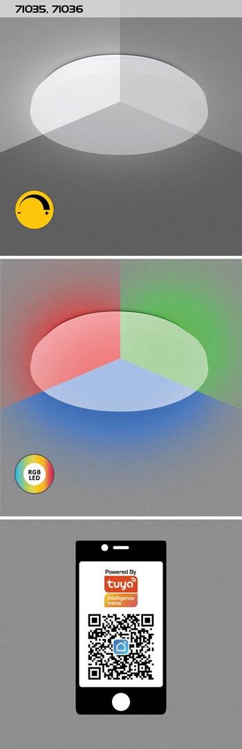 Таванната лампа Gerrigen Rabalux е препоръчителна за тези, които предпочитат осветително тяло с разширена функционалност. Този модел разполага с вграден LED източник на светлина, който осигурява енергийно ефективна работа и дълъг експлоатационен живот. Сред множеството интелигентни функции са регулируема цветна температура чрез телефона или стенен ключ, димиране, памет и таймер . Освен това, интелигентните функции могат да се управляват и чрез Wi-Fi. Този модел е идеален избор за всекидневната, спалнята или работното пространство. Лампата е оборудвана с RGB осветление.