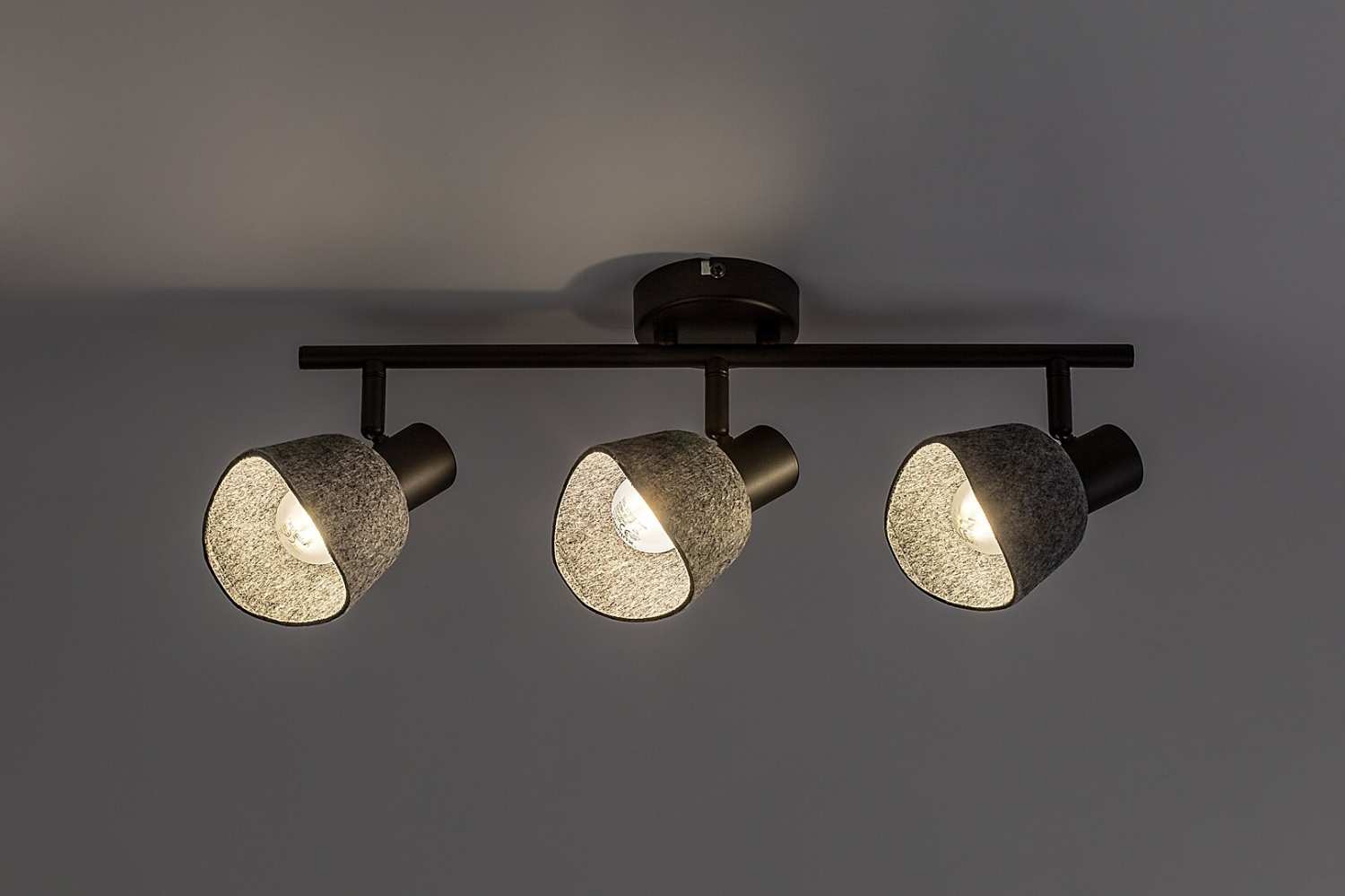 Извивката на абажурите с форма на камбана, комбинирана с меката текстура на филца, придава на лампата приятен и приветлив вид.Тази лампа е идеален избор за всекидневната, спалнята или работното пространство.