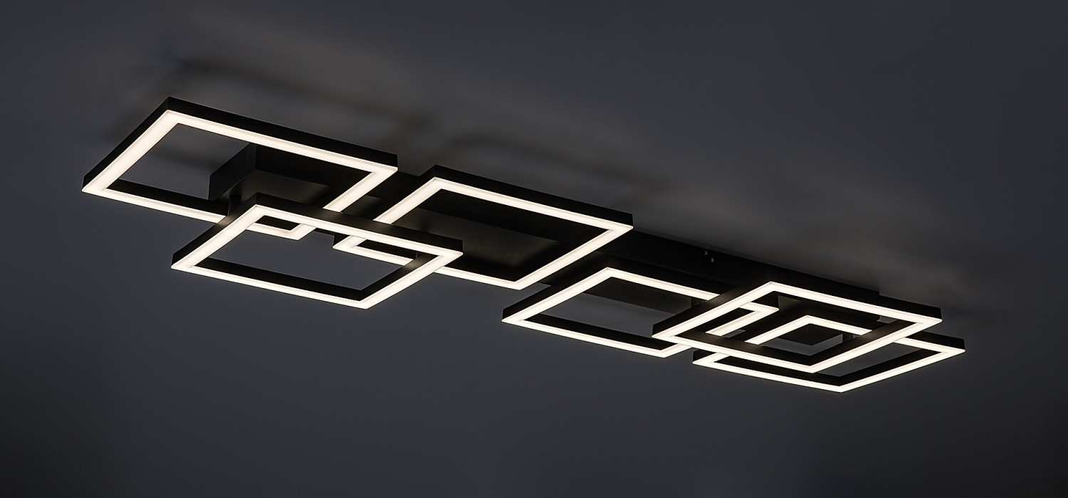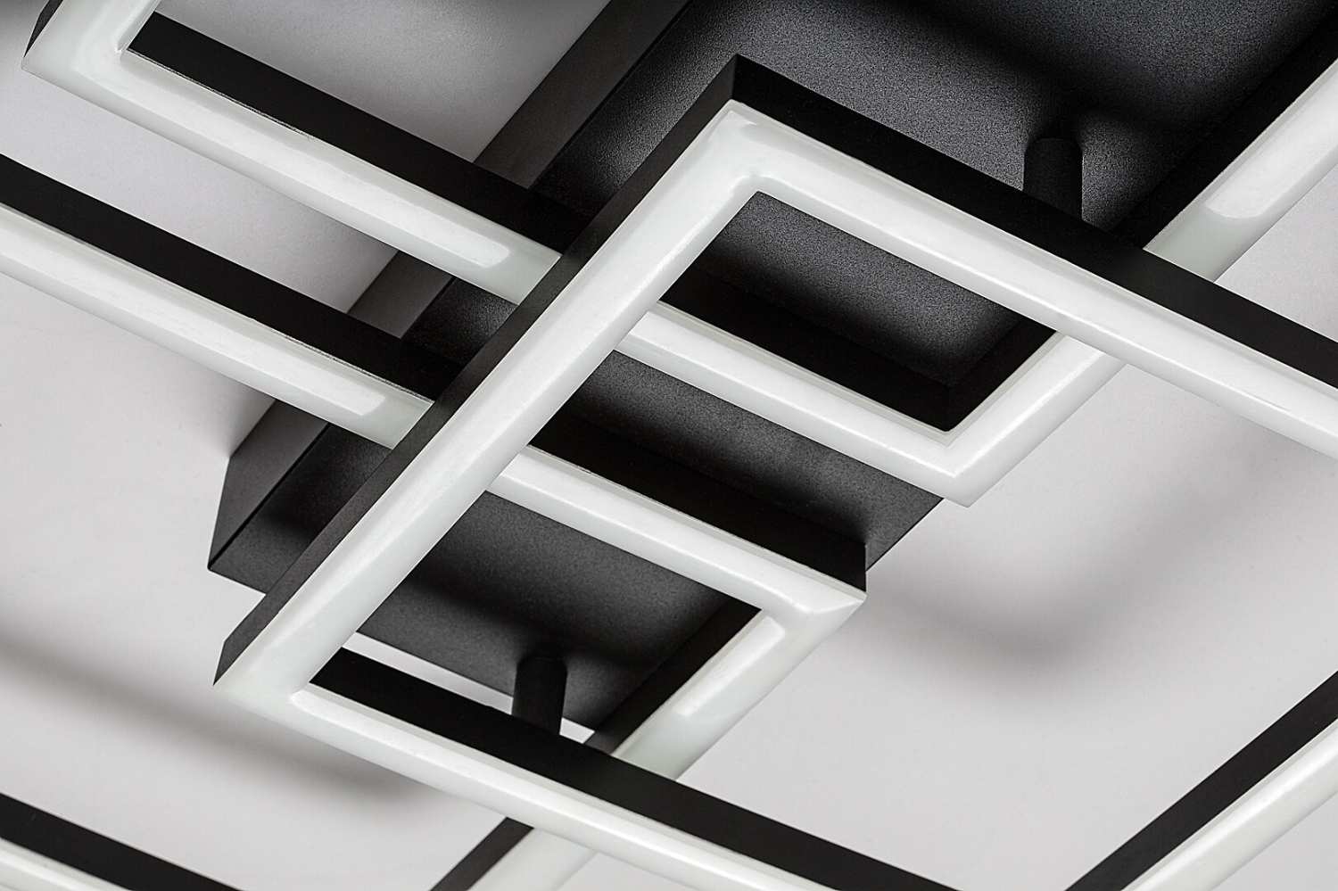 Таванната лампа Rabalux Fatma е идеалният избор за тези, които търсят модерно и впечатляващо смарт осветително тяло с изключителна светлинна интензивност. Този модел е изработен от метал в черен цвят с бял пластмасов абажур. Лампата се състои от квадратни елементи, които се пресичат в няколко точки, и може да бъде фиксирана към тавана с помощта на удължена квадратна декоративна основа. Разполага с вграден LED източник на светлина, чиято цветна температура може да се регулира чрез дистанционно управление или стенен ключ. Освен това, лампата предлага и други интелигентни функции като регулиране на яркостта, памет, таймер и нощно осветление – всички те могат да бъдат управлявани чрез дистанционно управление. Благодарение на изключителната си светлинна интензивност, лампата е подходяща и за по-просторни помещения. Тя е перфектният избор за модерни всекидневни, трапезарии и спални. Благодарение на LED технологията, този модел се отличава с енергийно ефективна работа и дълъг експлоатационен живот.