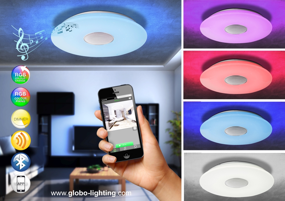 Особености:IP 20, избор на цвят и спектър на светлината с дистанционно, високоговорител, възпроизвеждащ звук от телефона ви, запаметяваща функция, функция - сън .....